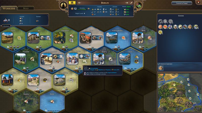 Quản lý nền kinh tế của bạn một cách cẩn thận và tạo ra sức mạnh tăng trưởng và xây dựng. Bắt đầu với những nguồn lực cơ bản để có được lương thực, của cải và sản xuất. Khi bạn tiến bộ, hãy quyết định cách chuyển đổi tốt nhất những hàng hóa đơn giản này thành những sản phẩm có giá trị hơn thông qua nghiên cứu và cải tiến. Chuyên môn hóa các khu vực của bạn, biến sắt thành vũ khí hoặc công cụ, gỗ thành giấy hoặc gỗ, vàng thành tiền xu hoặc đồ trang sức. Vận chuyển hàng hóa dư thừa đến nơi cần thiết, cho phép vựa lương thực của đế chế của bạn nuôi sống các thuộc địa xa xôi hoặc trung tâm công nghiệp của bạn để cung cấp cho quân đội gần kẻ thù của bạn.