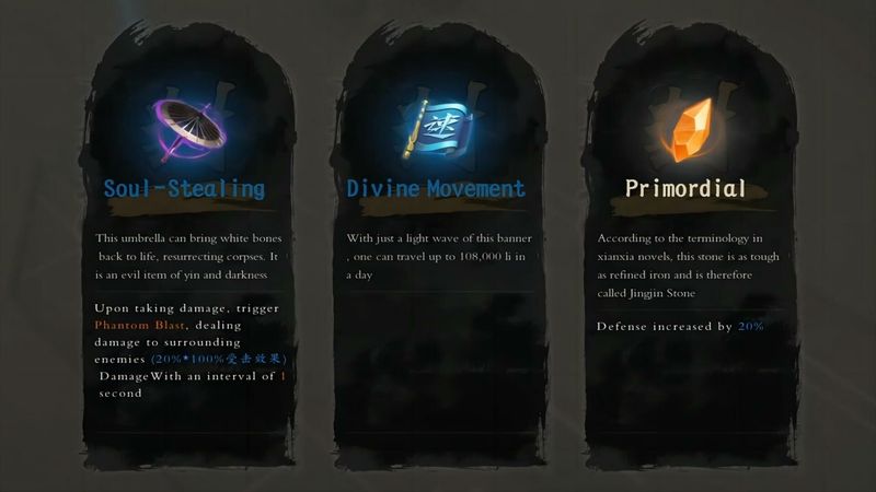 Hơn 70 kho báu để thu thập, cung cấp các buff khác nhau và thậm chí cả các kỹ năng bổ sung. Tập hợp các thuật ngữ rèn vũ khí trong mỗi chu kỳ luân hồi để tạo ra một vũ khí huyền thoại hùng mạnh.