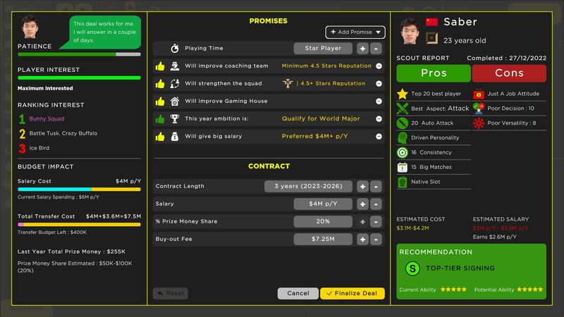 Trò chơi quản lý Esport phức tạp và có chiều sâu nhất trên thị trường.
