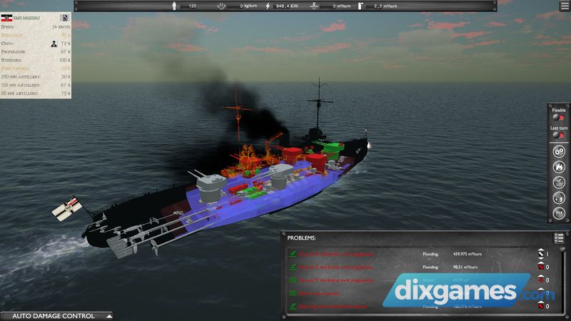 - Hệ thống kiểm soát thiệt hại. Người chơi có thể quản lý thủy thủ đoàn theo cách thủ công để sửa chữa các mô-đun, vá lỗ hổng, chữa cháy, v.v. để ngăn tàu thoát khỏi trận chiến và chìm.