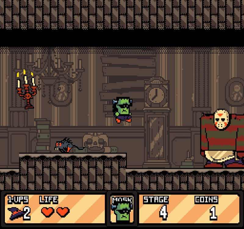 - Hơn 30 loại kẻ thù, bao gồm bí ngô, bộ xương và nhiều nhân vật khách mời kỳ lạ từ các bộ phim cũ.
