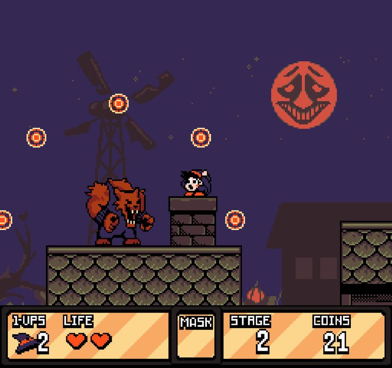 Một trò chơi nền tảng theo phong cách arcade với năm màn chơi và không cần lưu/tải. Một túi kẹo nhỏ chứa đầy kẹo và kẹo.