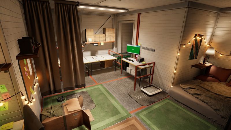 Bạn đang làm việc một mình tại một trung tâm hoàn tất đơn hàng từ xa. Người bạn đồng hành duy nhất của bạn là chú mèo trung thành—một sự hiện diện an ủi trong nhà kho rộng lớn, tối tăm mà bạn đang làm việc.