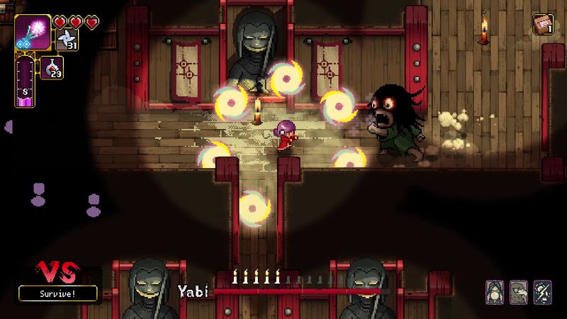 Tất cả các loại mononoke nguy hiểm sẽ làm gián đoạn công việc của Mako. Tìm hiểu các đòn tấn công của chúng và nhảy để tránh chúng, sau đó nhảy xung quanh để tấn công. Ngoài cây gậy ma thuật đáng tin cậy của mình, Mako có đủ thứ giúp cô trong các trận chiến, chẳng hạn như mật hoa đỏ, có thể làm chậm kẻ thù, cũng như vũ khí phụ, thuốc tiên, cọc, v.v. Hãy sử dụng chúng một cách hiệu quả để dọn đường cho Mako và đảm bảo giao hàng suôn sẻ.