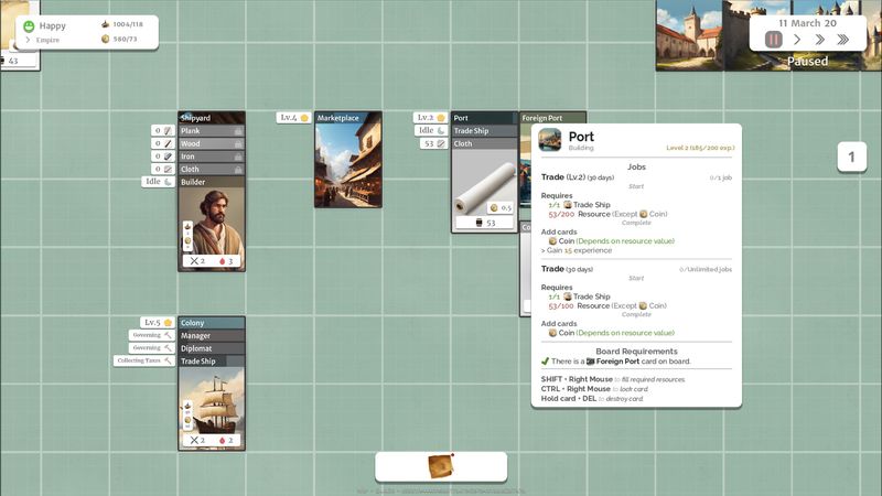 • Thu thập tài nguyên từ các lá bài như Rừng, Mỏ đá, Mỏ và Biển.