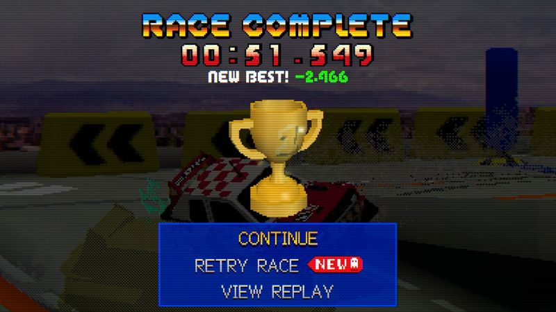 Sau khi đánh bại cúp vàng cho một khóa học, các bóng ma từ những người chơi khác chỉ cách bạn một chút trên bảng xếp hạng sẽ tự động được tải xuống để đua, đưa bạn vào luồng “chỉ một lần nữa” khi bạn đuổi theo các đối thủ. Giới hạn các đối thủ tự động tải xuống chỉ dành cho bạn bè trên Steam cũng là một tùy chọn.