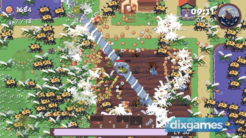 Cắt bỏ vô số cây trồng và sinh vật hư hỏng trong khi xây dựng các công trình phá game! Không cần thuốc trừ sâu là một trò chơi thiên đường hành động roguelite với các yếu tố mô phỏng nông trại cung cấp vô số chỉ số và đặc điểm nhân vật đặc biệt để tạo ra khả năng chạy cực kỳ đa dạng.