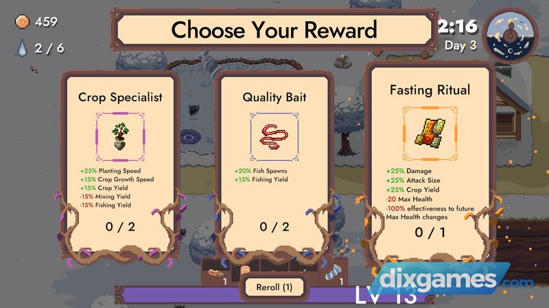 Kiếm vàng và kinh nghiệm quan trọng từ việc trồng trọt, đánh bắt cá và khai thác mỏ. Mở rộng âm mưu của bạn để thu hoạch số lượng lớn cây trồng và xây dựng cẩn thận để nâng cao khả năng trồng trọt, đánh cá và khai thác của bạn.