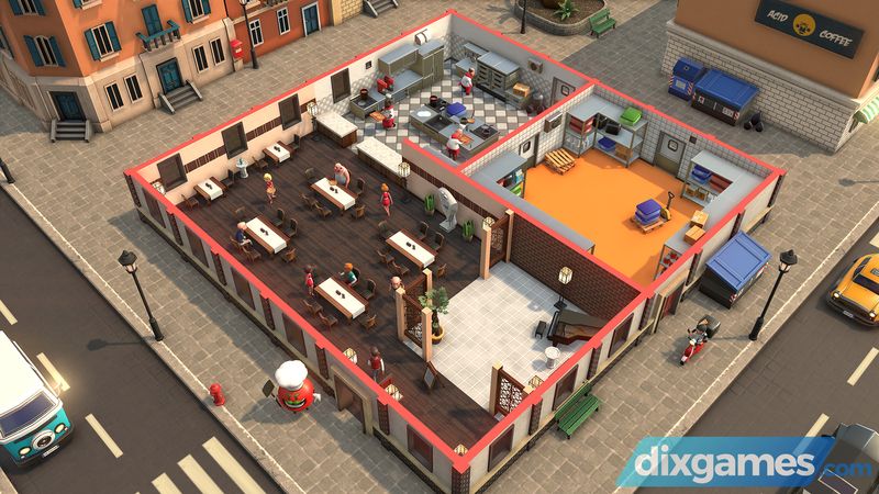 Tùy chỉnh nhà hàng của bạn theo cách bạn muốn: sơ đồ mặt bằng, nội thất, nhân sự, trang trí nội thất. Mỗi thợ làm bánh pizza đều có một ít người trang trí nội thất.