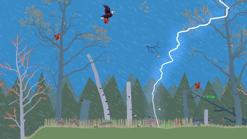 Nhấp vào động vật sẽ kích hoạt các hành vi khác nhau ảnh hưởng đến hệ sinh thái rừng: Phân nai sừng tấm, bón phân cho đất. Chuột đồng ăn rễ cây, làm hỏng cây. Cáo săn bắt các loài động vật khác.