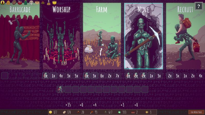 Đặt những tay sai của bạn vào các ô tài nguyên tốt nhất để tối đa hóa lợi nhuận – Chỉ số của mỗi tay sai (như sức mạnh hoặc sự khéo léo) quyết định lượng sắt mà chúng khai thác, thức ăn mà chúng sản xuất và dân làng mà chúng có thể chiêu mộ!