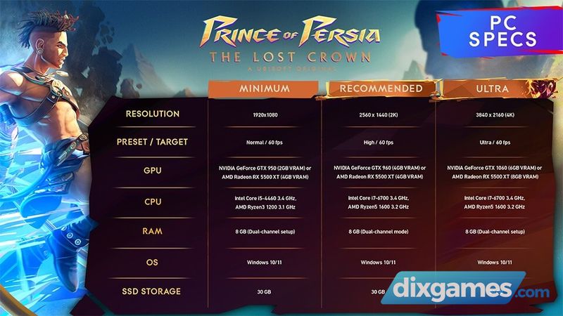 YÊU CẦU HỆ THỐNG KHUYẾN NGHỊ (RECOMMENDED) CHO 1440P CỦA PRINCE OF PERSIA: THE LOST CROWN