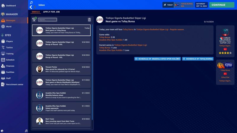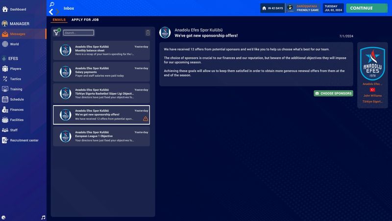 • Trong Pro Basketball Manager 2025, giờ đây bạn có toàn quyền kiểm soát ngân sách của đội, ngân sách này sẽ bị ảnh hưởng bởi các nhà tài trợ bạn chọn. Vào đầu mỗi mùa giải, bạn sẽ nhận được các đề nghị tài trợ dựa trên thành tích và danh tiếng của đội trong giải đấu. Các nhà tài trợ sẽ đưa ra các mục tiêu có thể giúp bạn tăng thêm thu nhập nếu bạn hoàn thành chúng. Tuy nhiên, hãy lựa chọn một cách khôn ngoan, vì kết quả kém có thể ảnh hưởng tiêu cực đến ngân sách của bạn.