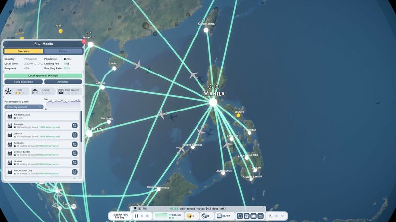 ■ Trung tâm và nan hoa hay điểm đến điểm? Tùy bạn quyết định. Bạn có thể tập trung mạng lưới của mình để xây dựng một trung tâm hoặc tận dụng tính linh hoạt của trò chơi để gửi máy bay của mình theo các chu kỳ nhiều thành phố dài.