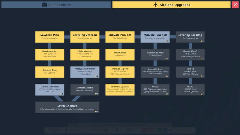 ■ Máy bay mới luôn ở quanh đây. Máy bay có sự kết hợp giữa tốc độ, phạm vi, mức tiêu thụ nhiên liệu và sức chứa, nghĩa là không có giải pháp nào phù hợp với tất cả cho mạng lưới của bạn. Bạn sẽ thấy mình dựa vào các máy bay khác nhau từ lần chơi này sang lần chơi khác.