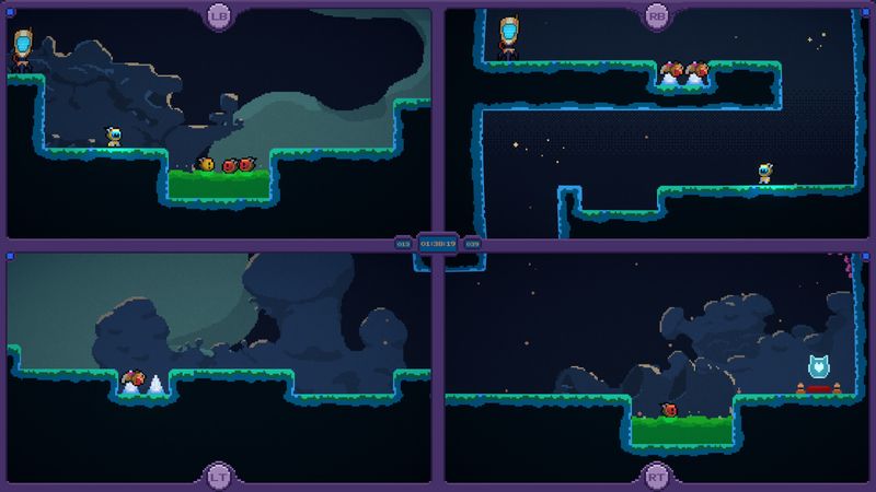 Điều khiển Quadroids của bạn cùng lúc trên bốn màn hình và vượt qua hơn 100 cấp độ đầy nguy hiểm. Nhảy để tránh các bồn tắm axit, tia laser, gai nhọn chết người và các cạm bẫy độc ác khác hoặc hy sinh những tay sai của bạn một cách chiến lược để tạo ra các cơ hội chơi nền tảng mới.