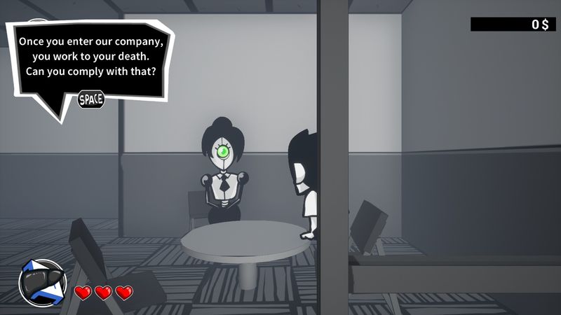 Câu chuyện bắt đầu vào một buổi sáng bình thường khi bạn đến công ty như thường lệ, chỉ để phát hiện ra rằng tất cả đồng nghiệp đều tin rằng bạn sắp nghỉ việc. Họ coi bạn là kẻ phản bội công ty và tấn công bạn. Để tìm hiểu chuyện gì đang xảy ra, bạn bắt tay vào hành trình bảo vệ bản thân bằng chiếc cặp của mình. Sau khi chứng kiến bóng tối bên trong công ty, bạn quyết định nghỉ việc bằng cách đánh bại công ty!