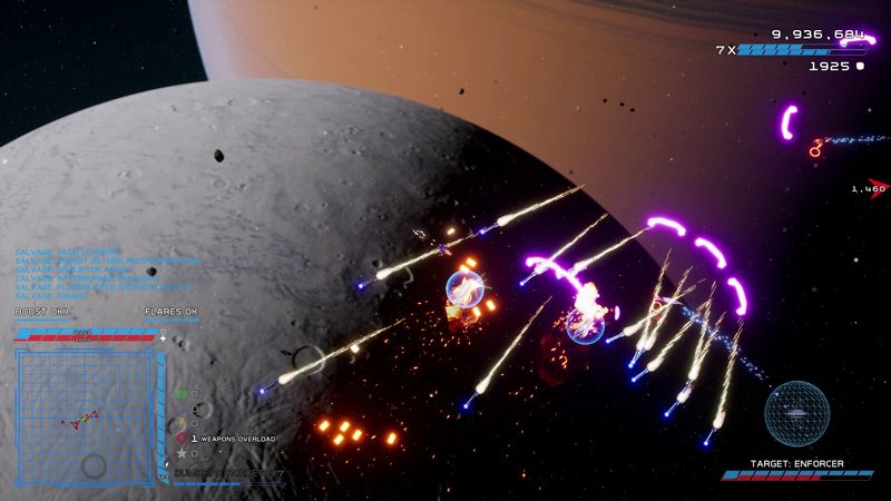 Một game bắn súng Arcade Spaceship 2.5D từ trên xuống Roguelike. Nhiều tàu có thể chơi được, mỗi tàu có đặc điểm và vũ khí khác nhau. Thu hồi vũ khí và nâng cấp từ kẻ thù bị đánh bại. Mỗi khu vực mang đến những kẻ thù, trùm và nâng cấp riêng. Bạn có thể quay trở lại Trái đất không?