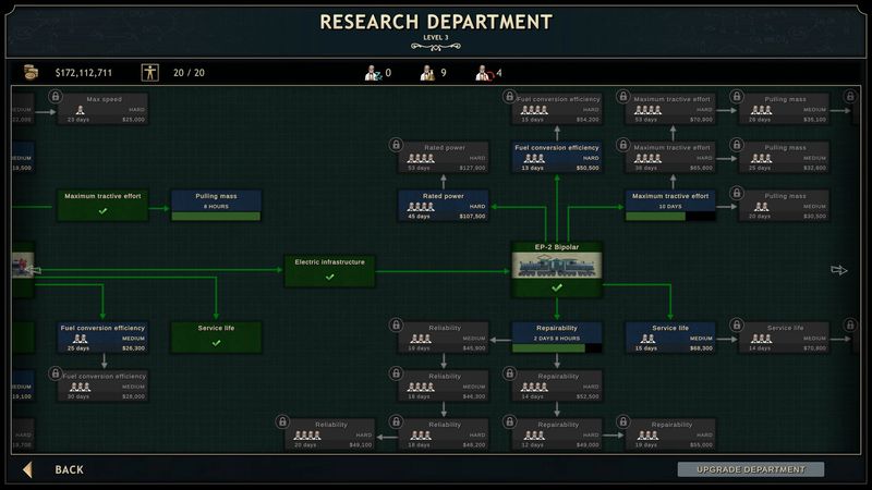 Tiến lên và tiến lên! Kết nối khu vực bằng đường sắt để thúc đẩy thương mại và cung cấp cho tổ chức của bạn. Nâng cấp đường ray của bạn theo thời gian, mở khóa đầu máy xe lửa chạy bằng dầu diesel và điện, đồng thời tăng tốc độ và hiệu quả để vận chuyển nhiều hàng hóa hơn trên khắp cả nước. Kiểm soát đèn tín hiệu để kiểm soát luồng giao thông và giữ cho các ngã tư thông thoáng và tàu hỏa chạy trơn tru. Xây dựng cầu, đường hầm hoặc đường ngang để quản lý mạng lưới đường ray và đầu máy xe lửa rộng lớn.