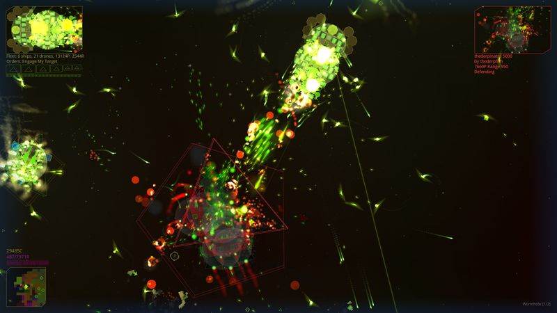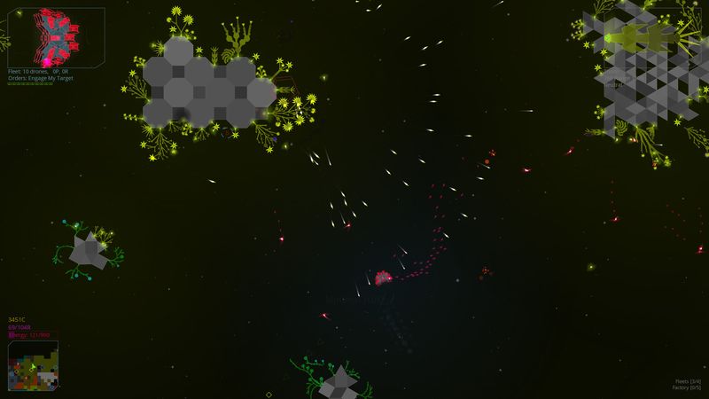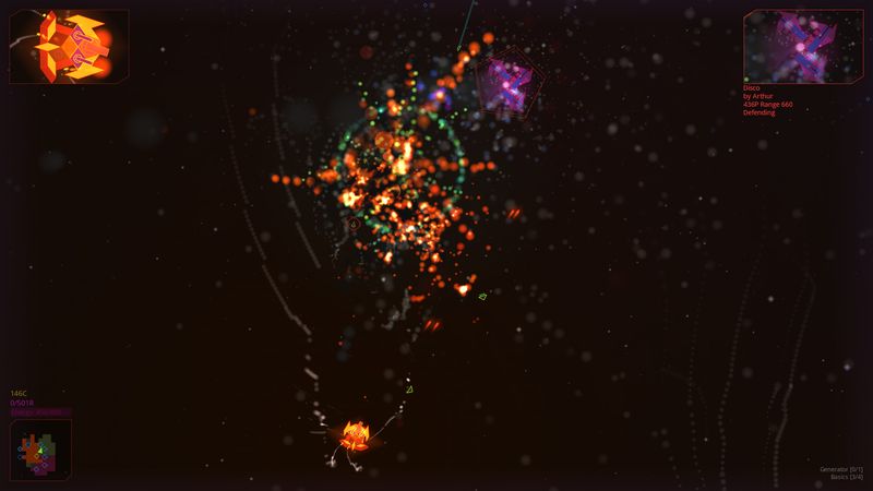 Và rồi bạn lại phát triển. Và một lần nữa. Và giờ bạn là một thiết giáp hạm có khả năng tạo ra hạm đội của riêng mình, và mỗi thành viên trong hạm đội của bạn có thể tạo ra hạm đội của riêng mình, và bạn cần điều đó. Kẻ thù của bạn liên tục thay đổi hình dạng, kích thước và cường độ khi các con tàu được tạo ra và mài giũa qua trải nghiệm của hàng nghìn trận chiến tìm đường từ máy tính của người tạo ra chúng đến máy tính của bạn, nhảy vào vũ trụ của bạn với tất cả lòng thương xót trong thế giới KHÔNG CÓ GÌ CẢ.