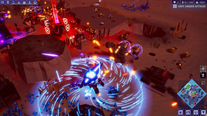 Lối chơi RTS cổ điển kết hợp với roguelike hiện đại. Định hình bản dựng của bạn trong mỗi lần chạy bằng cách lắp ráp một kho vũ khí và cơ sở vật chất mạnh mẽ đang phát triển. Thu thập tài nguyên, xây dựng căn cứ của bạn. Nâng cao quân đội của bạn và gọi các cuộc tấn công quỹ đạo để đánh bại các thế lực đe dọa sự sống còn của bạn.