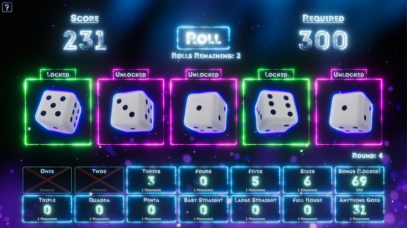 Lăn xúc xắc, ghi điểm và chọn hiện vật để nâng cao lối chơi của bạn khi bạn nhắm đến mục tiêu đạt được vòng chơi cao nhất có thể. Mỗi vòng chơi yêu cầu bạn ghi được một số điểm nhất định để tiến lên, với độ khó tăng dần khi bạn tiến lên. Không đạt được số điểm yêu cầu sẽ dẫn đến trò chơi kết thúc, đưa bạn trở lại điểm bắt đầu để thử lại.