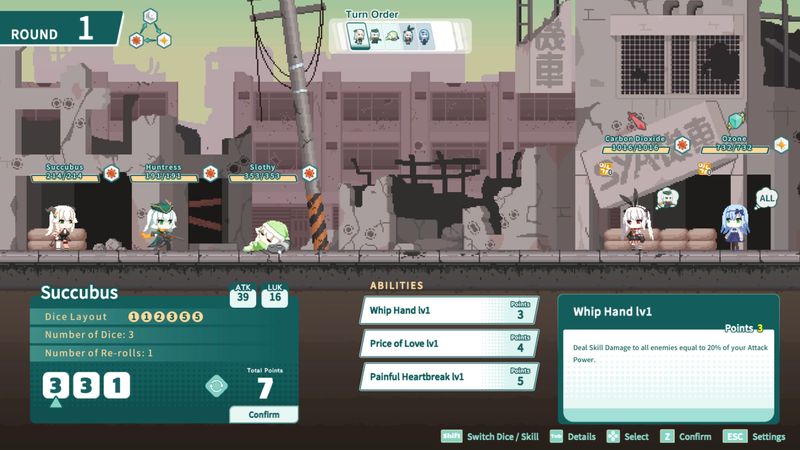 Tung bộ xúc xắc độc đáo của mỗi nhân vật để tích lũy điểm hành động, sau đó dành số điểm đó cho các chiêu thức và khả năng đặc biệt! Bạn sẽ phải sử dụng điểm của mình một cách khôn ngoan nếu muốn đánh bại mọi kẻ thù mới trên đường đi của mình.