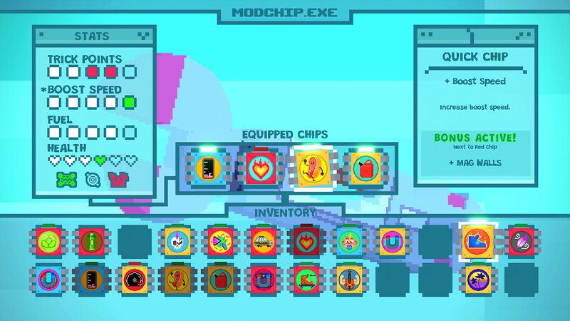 • Thu thập và kết hợp 24 Mod Chip để tùy chỉnh lối chơi của bạn, điều chỉnh chúng để chơi thoải mái hơn hoặc tăng chỉ số của bạn để có thử thách khó hơn.