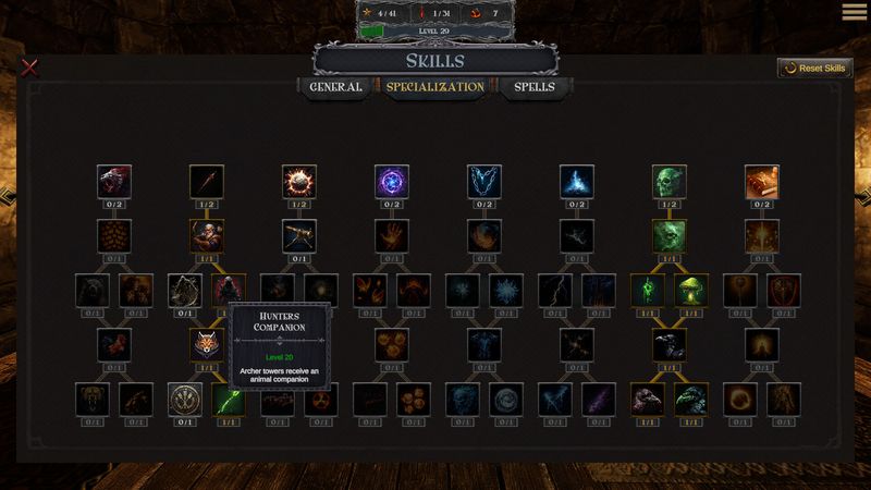 • Một cây kỹ năng mở rộng với khoảng 100 kỹ năng và thẻ phép thuật khác nhau