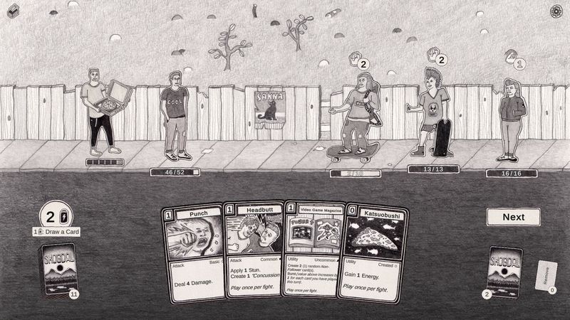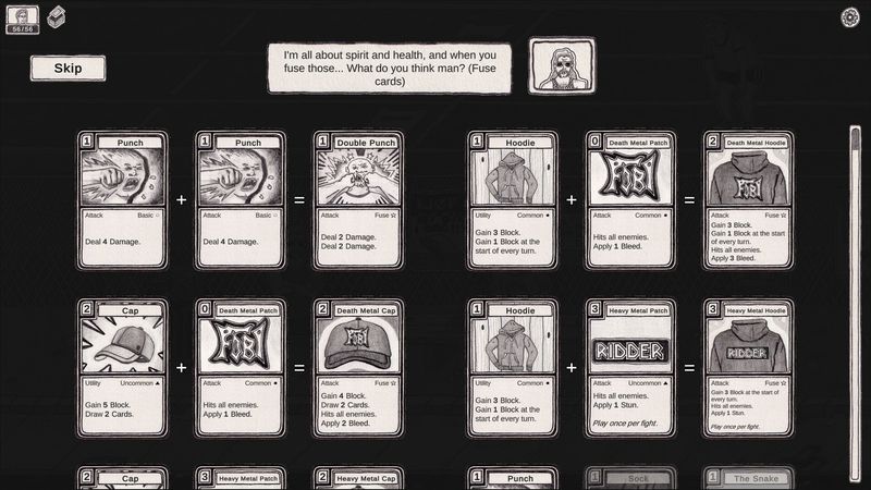 Skogdal cung cấp hơn 300 lá bài khác nhau để bạn khám phá và soạn thảo. Kết hợp các lá bài, xây dựng các combo mạnh mẽ và chiêu mộ những người theo dõi để hỗ trợ bạn trong hành trình của mình: chính trị gia, vận động viên thể hình, đô vật, kẻ đốt phá, người trượt ván, punk, linh mục, thú cưng và sâu bọ…