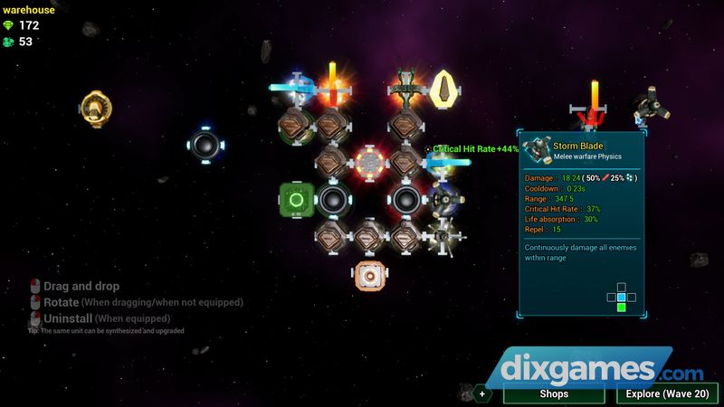 Sáu mươi lõi cơ bản, hàng trăm thiết bị trạm gốc và hàng nghìn chip, bạn có thể tự do hợp tác và bắn thông qua thao tác cần điều khiển góc kép trong trò chơi Roguelike sinh tồn! Khám phá không gian khoa học viễn tưởng và chế tạo tàu chiến mạnh nhất của bạn!