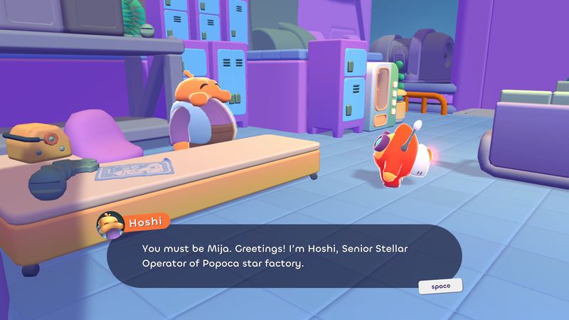 Trông thật dễ thương phải không? Tạo ra các ngôi sao không dễ như bạn nghĩ, nhưng bạn không đơn độc! Công việc của bạn trong nhà máy được hỗ trợ bởi rất nhiều loại bot với nhiều khả năng khác nhau. Một số bot có thể nâng vật nặng và một số có thể giải quyết các vấn đề phức tạp bằng tia laser – đây là một kỹ năng khá đáng ghen tị. Chỉ cần đảm bảo rằng bạn luôn đeo kính bảo hộ.