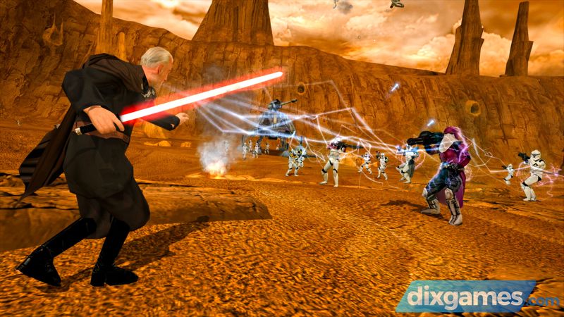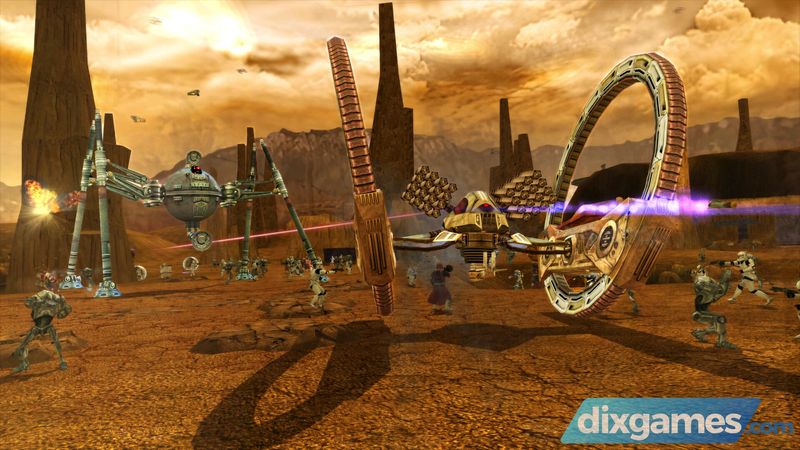 • Địa điểm rộng lớn với hỗ trợ trực tuyến lên tới 64 người chơi : Chiến đấu trên mặt đất: Chiến binh Wookiee, Đội quân phản lực, Droidekas và nhiều hơn nữa trong hành động nhiều người chơi