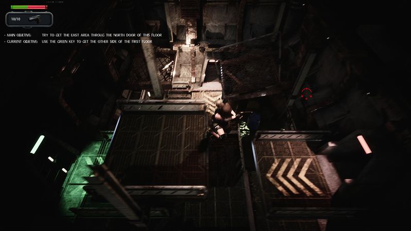 Chủ yếu là góc nhìn từ trên xuống, nhưng gần hơn bình thường, bạn phải khám phá môi trường tối tăm và ngột ngạt mà không có bất kỳ tham chiếu bản đồ nào. Ở những khu vực cụ thể, camera thông thường sẽ được thay đổi thành camera cố định. Để tiến lên, bạn cần giải câu đố, đẩy hoặc kéo vật thể, trèo, nhảy và chạy. Bạn sẽ phải đối mặt với những kẻ thù có thể bất ngờ tấn công bạn ở những góc bất ngờ nhất và bạn không nên đánh giá thấp chúng ngay cả khi bạn nghĩ rằng mình đã giết chúng bằng phát bắn tiếp theo. Để giúp bạn trong cuộc phiêu lưu, bạn có thể thu thập hộp cứu thương và đạn dược. Bạn sẽ cần tìm kiếm chìa khóa, kích hoạt công tắc và tìm kiếm thông tin để tiếp tục cuộc phiêu lưu. Hiện tại, bạn có vũ khí bắt đầu và một vũ khí khác mà bạn sẽ phải tìm cách tiếp cận.