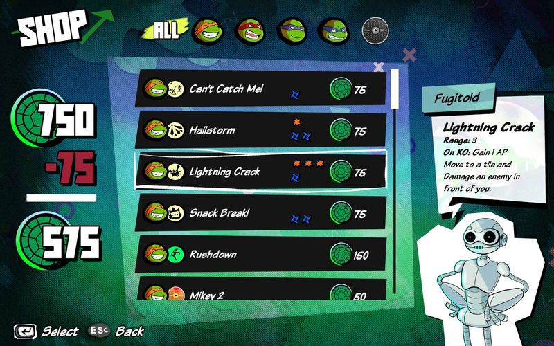 Splinter và Shredder đã chết. Hãy giúp Teenage Mutant Ninja Turtles giải quyết những mối đe dọa mới chết người và cách tiếp cận của tuổi trưởng thành trong trò chơi đánh nhau theo lượt nhịp độ nhanh này!