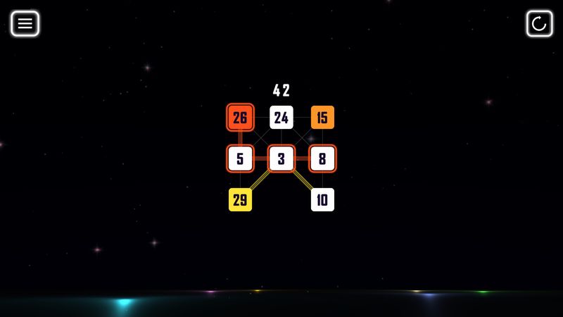 - Bạn bắt đầu vẽ một đường đi từ một trong các quân cờ màu, cho đến khi nó tổng là 42.
