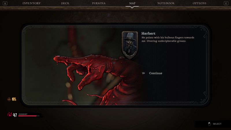 Nghệ thuật đầy phong cách sẽ tạo không khí cho một cuộc phiêu lưu kinh dị kiểu Gothic, nơi Herbert cố gắng sống sót bằng cách sử dụng các kỹ năng, vật phẩm và bộ bài của mình.