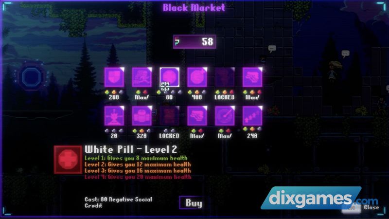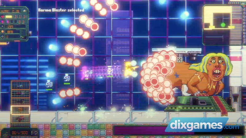 Trong run’n’gun-roguelite lấy cảm hứng từ Cyperpunk này, thế giới được điều khiển bởi giới tinh hoa kỹ trị, những người tìm kiếm sự bất tử kỹ thuật số và vượt qua cơ thể con người của họ và họ sẽ không dừng lại để đạt được mục tiêu của mình.