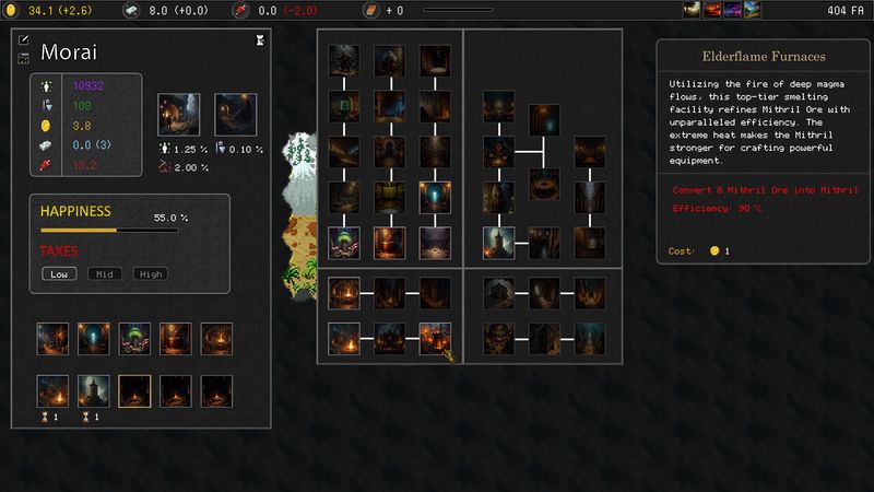 • Thiết lập và mở rộng lãnh thổ của bạn với các thị trấn thu thập tài nguyên quan trọng để tuyển mộ đơn vị. Nâng cấp các khu định cư này bằng nhiều công trình khác nhau.