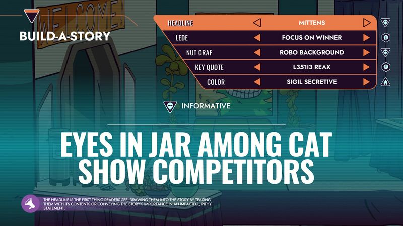 Chúng tôi sẽ giao cho bạn những câu chuyện mang tính siêu địa phương! Trong bất kỳ chu kỳ nhất định nào, hãy chọn đưa tin về các vụ tai nạn tàu con thoi, các buổi biểu diễn mèo giữa các hệ mặt trời, thậm chí cả đám tang ma ngoài không gian. Tùy bạn đấy!