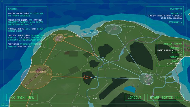 Tiny Combat Arena là một trò chơi mô phỏng chuyến bay chiến đấu được yêu thích nhằm đạt được sự cân bằng hoàn hảo giữa trình mô phỏng và trải nghiệm chiến đấu trên không, có thể tùy chỉnh, dễ tiếp cận. Tất cả đều được thực hiện theo kiểu dáng cách điệu tượng trưng cho một cuộc xung đột hư cấu thời Chiến tranh Lạnh.