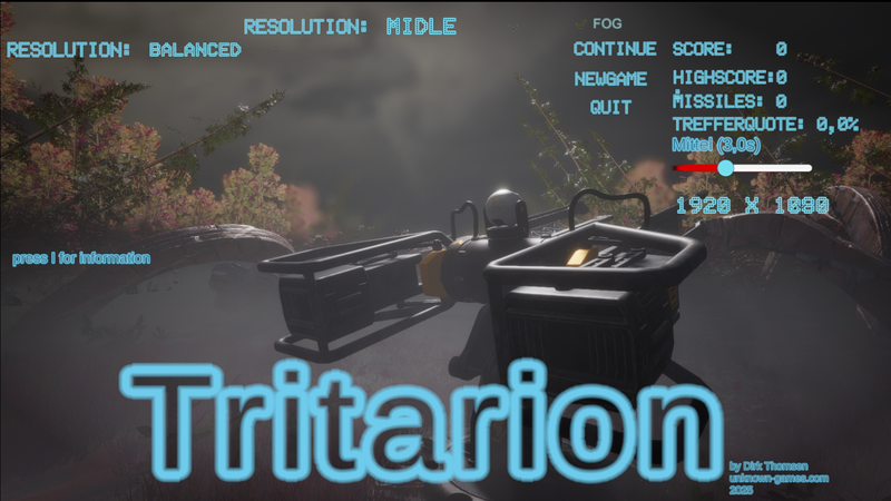 Tritarion là game bắn súng 3D hành động nhịp độ nhanh với một bước ngoặt độc đáo: điều khiển phi thuyền của bạn từ góc nhìn buồng lái góc nhìn thứ nhất hoặc chuyển sang góc nhìn từ trên xuống cổ điển. Mục tiêu của bạn: thu thập 5 Torboni ở mỗi cấp độ để kích hoạt cổng và tiến tới khu vực tiếp theo. Mỗi cấp độ được tạo theo thủ tục, đảm bảo rằng không có hai lần chạy nào giống nhau. Đơn vị địch, môi trường thay đổi và thử thách liên tục về thời gian nhảy của bạn lên cấp độ tiếp theo giúp duy trì sự căng thẳng ở mức cao!