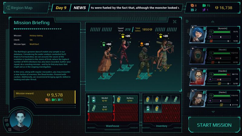 Twilight Wars là game nhập vai theo lượt lấy bối cảnh thế giới cyberpunk phong phú và đầy không khí, nơi các tập đoàn lớn trở thành siêu cường quốc mới, tiến hành các cuộc chiến tranh bí mật giành dữ liệu, công nghệ và ảnh hưởng. Khi cán cân quyền lực ngày càng hỗn loạn, bạn được giao nhiệm vụ hồi sinh một tổ chức bí mật đã ngủ yên từ lâu, chuyên chống trả. Tập hợp một nhóm chuyên gia ưu tú, xây dựng lại căn cứ ẩn của bạn và chiến đấu với những kẻ tin rằng chúng có thể cai trị mà không bị kiểm soát. Chào mừng đến với chiến trường tăm tối của giữa thế kỷ 21.