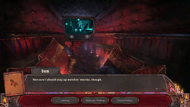 Nhà trị liệu ma cà rồng là một cuộc phiêu lưu tường thuật lấy cảm hứng từ What We Do in the Shadows, các tác phẩm kinh dị của Mel Brooks, Monty Python và Horrible History, trong đó bạn vào vai một kẻ hút máu cải tạo giúp các ma cà rồng khác tìm thấy sự bình yên nội tâm.