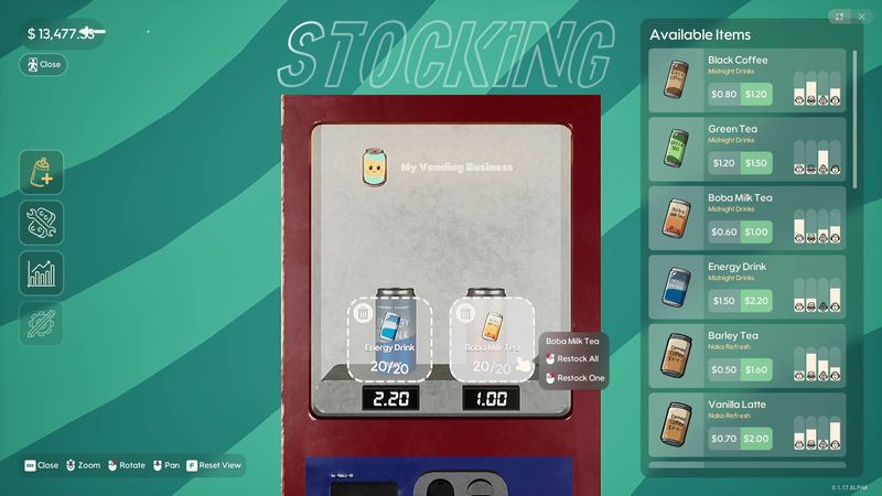 Xây dựng một đế chế máy bán hàng tự động trong trò chơi mô phỏng nhàn rỗi ấm cúng này! Quản lý nhân viên, trang trí địa điểm và theo dõi doanh nghiệp của bạn phát triển. Chơi chủ động hoặc để nó chạy thụ động trong nền với âm nhạc thư giãn để thưởng thức trong khi bạn làm việc hoặc thư giãn.