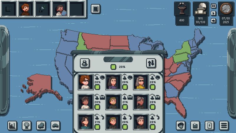 Vào vai một nhân vật chính trị hiện tại hoặc có thể tùy chỉnh hoàn toàn và vận động cho nhiều cuộc bầu cử thay thế của Hoa Kỳ! Trong “Vox Populi: USA 2024”, bạn và các nhân vật xung quanh phải quảng bá ý tưởng và sự nổi tiếng của mình trên khắp cả nước để giành chiến thắng!