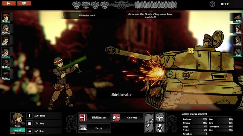 Đánh bại kẻ thù không chỉ bằng sức mạnh mà chủ yếu là bằng sự thông minh. Sử dụng các kỹ năng của cấp dưới để giành lợi thế trước kẻ thù. Thường xuyên quét sạch các nơi ẩn náu và kho vũ khí của Đức để mua vũ khí cho Cuộc nổi dậy. Quản lý vũ khí và đạn dược để các anh hùng của bạn được trang bị đầy đủ cho các cuộc đụng độ với kẻ thù. Thúc đẩy cả những phiến quân anh hùng, những người sẽ có được – ngày càng hữu ích trong các cuộc đụng độ – các kỹ năng theo thời gian và tạo thành một đội hiệu quả, gắn kết.