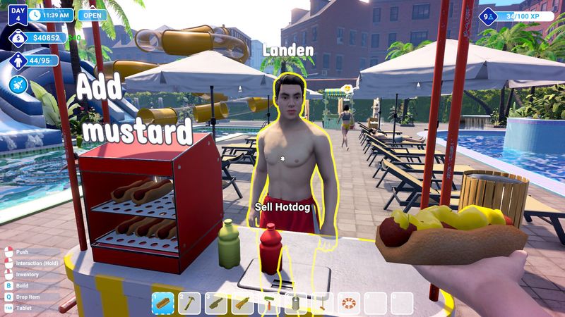 Ban đầu, tất cả đều do bạn quyết định. Từ việc bán vé, phục vụ đồ ăn, cứu khách đuối nước, sửa chữa máng trượt bị hỏng, dọn dẹp sau khi khách đến, cho đến việc dọn phân ra khỏi hồ bơi. Mọi thứ đều hỗn loạn, đòi hỏi sự khéo léo và tất cả đều là một phần của việc vận hành một công viên nước thành công.