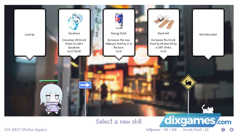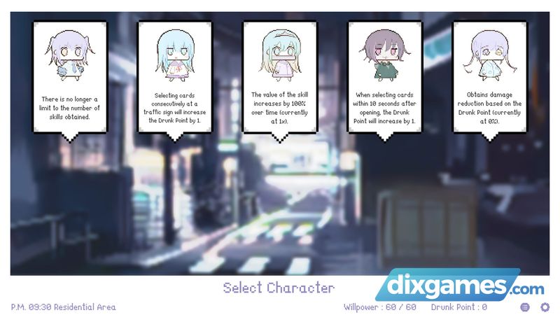 Kỹ năng đến từ các nhân vật khác nhau và bạn sẽ gặp chúng ở nhiều địa điểm khác nhau trong trò chơi. Gặp gỡ những nhân vật đó sẽ đưa câu chuyện tiếp tục cho đến cuối đêm.
