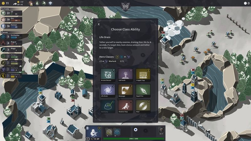 - Cây kỹ năng phe phái: Xây dựng các công trình Người, Orc hoặc Elf để mở khóa các đặc quyền riêng biệt cho từng phe.